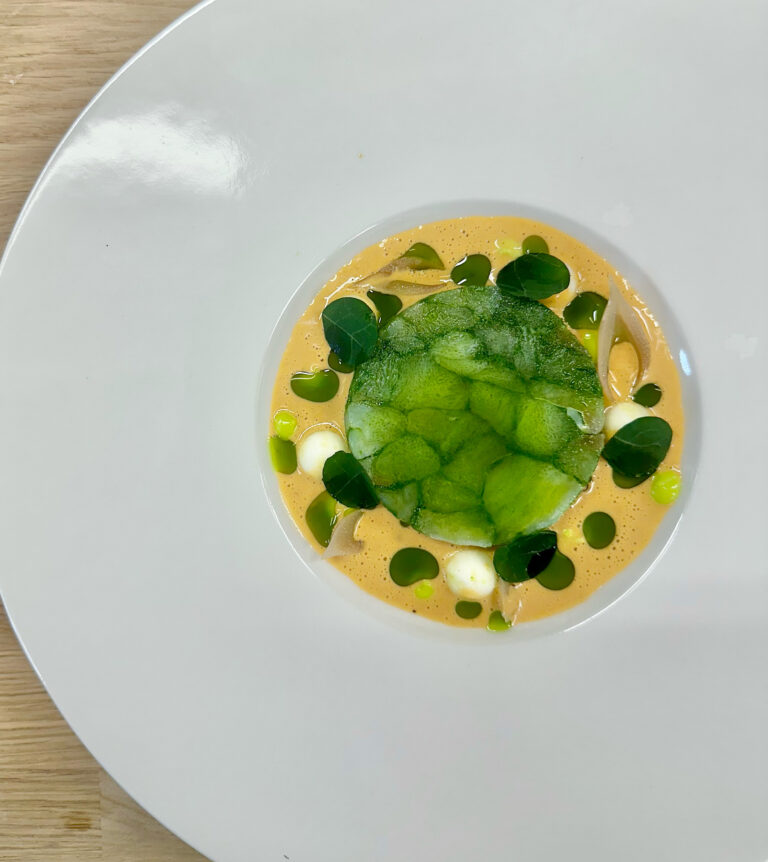 Hummerbisque, persillerullet torsk, persilleemulsion, knoldselleri.