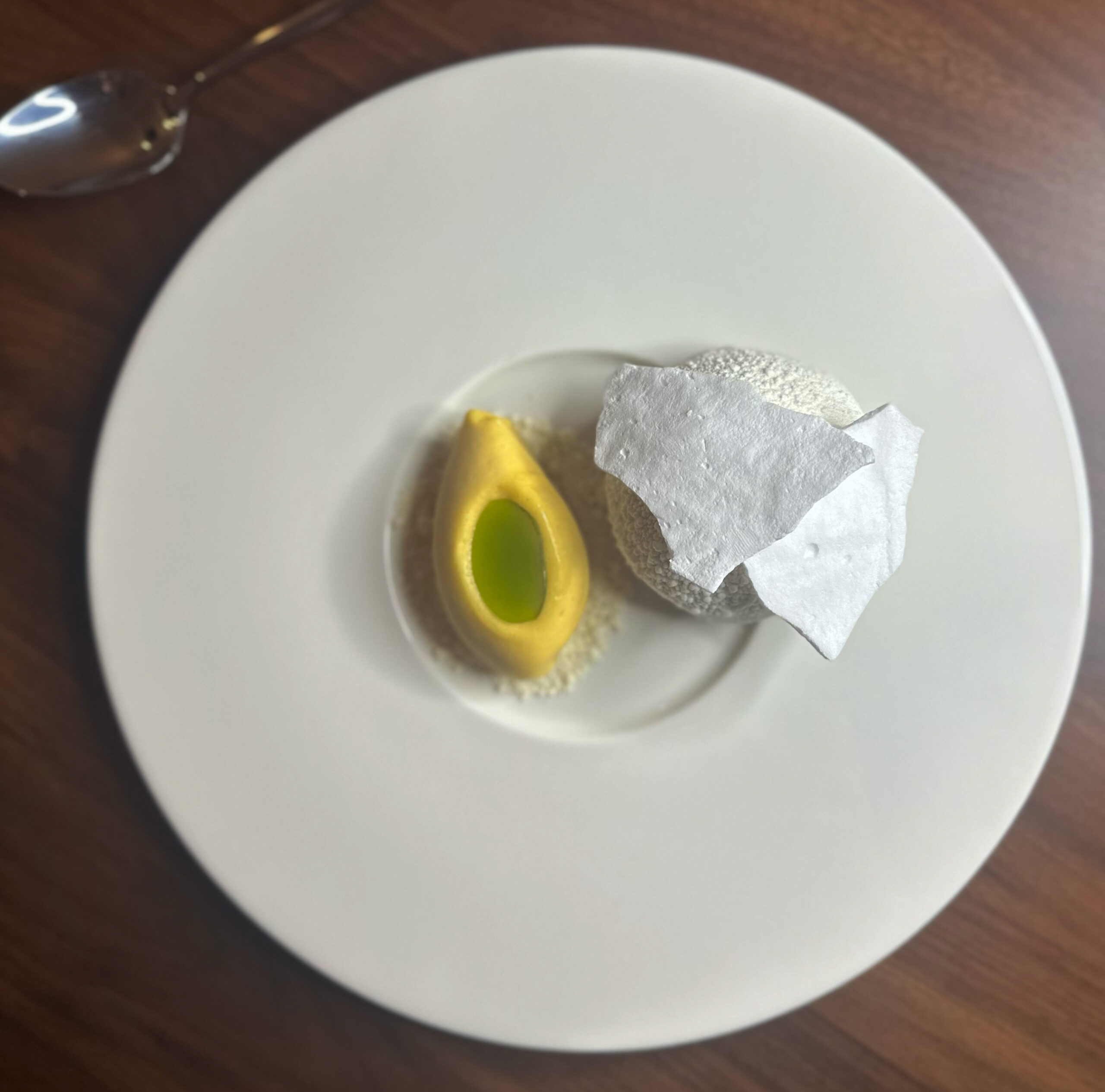 Almond cake, burnt pineapple, caramelized white chocolate, lemon sorbet. Fig